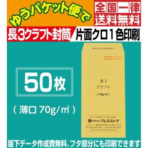 封筒印刷 長3クラフト封筒薄口 黒1色 50枚 版下作成費無料 フタ部分にも印刷可