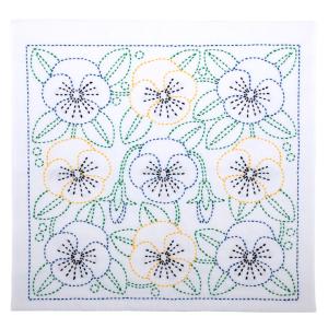 刺繍 刺し子キット 花ふきん SASHIKO WORLD Mxico パンジー|刺し子 花ふきんキット 花 メキシコ KSW-023