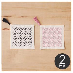 刺し子キット コースター 白 2枚組 一目刺し <柿の花・十字花刺し> 3-124-5 日本製 | 刺し子のコースター キット 水で消える図案 かんたん 初心者 原ウール