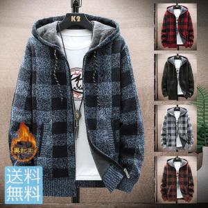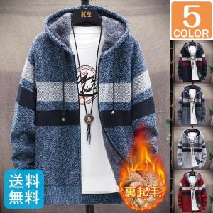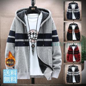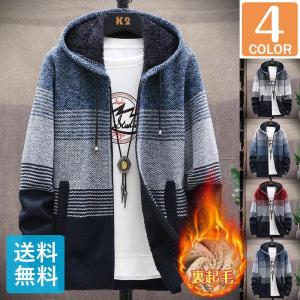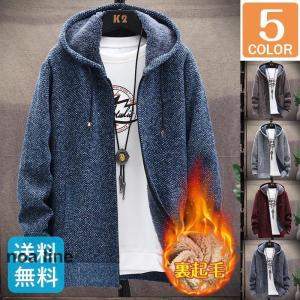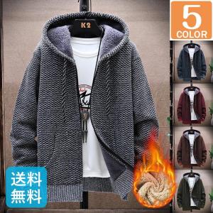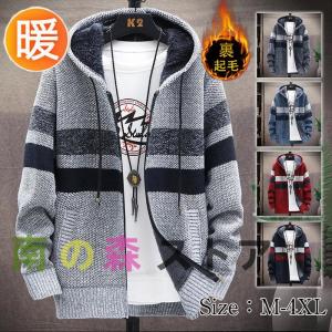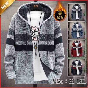 パーカー メンズ ニットカーディガン 裏起毛 ジャケット フード付き 厚手 スウェットパーカー ニットセーター 長袖 防寒 秋冬 ス