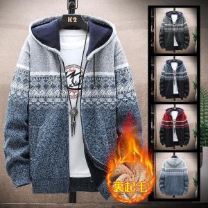 メンズ カーディガン ニットセーター パーカー 防寒 ジャケット 厚手 裏起毛 フード付き アウター 秋冬 暖かい