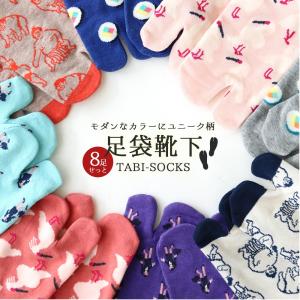 靴下 レディース 足袋ソックス ユニーク和柄 モダンデザイン ショート丈 オシャレで機能的 外反母趾予防 8足セット 綿混 海外土産 ギフト 送料無料