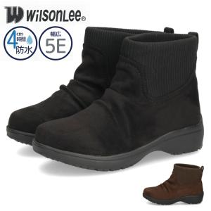 ショートブーツ レディース 歩きやすい ローヒール ブーツ 幅広 5E 軽量 防水 リブニット 滑りにくい 防滑 靴 Wilson Lee ウィルソンリー 8881 爆買