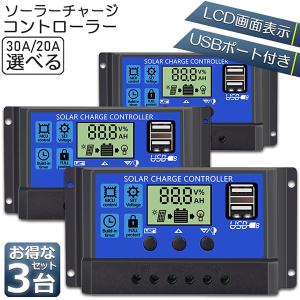 爆買 ソーラーチャージ コントローラー 3台セット 20A 30A 12V 24V 鉛蓄電池車バッテリー充電コントローラー USBポート 付き LCD