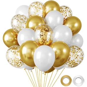 風船 バルーン 飾り付け バースデー パーティー用 誕生日 デコレーション 30個セット (ホワイト&ゴールド)