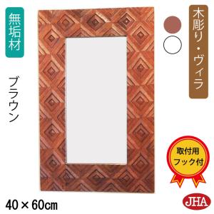 JHAアンティークミラー (デラックス) ウッディ・モダン・木彫りミラー(ヴィラ)W400×H600(ブラウン)壁掛け鏡 ウォールミラー バリ島 洗面 トイレ 店舗