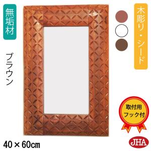 JHAアンティークミラー (デラックス) ウッディ・モダン・木彫りミラー(シード)W400×H600(ブラウン)壁掛け鏡 ウォールミラー バリ島 洗面 トイレ