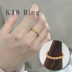 K18 チェーンリング ロープチェーン ロープリング 18金 指輪 金属アレルギー