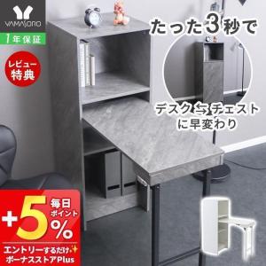 デスク おしゃれ 棚 付き 天板 収納 折り畳み 幅 38cm 102cm 収納型デスク 省スペース 机 収納 ホワイト グレー Storio ストリオ ヤマソロ