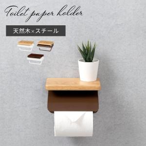 トイレットペーパーホルダー 1連 1個 横型 紙抑え付き 棚付き 天然木 スチール 粉体塗装 賃貸 DIY 模様替え 簡単 2倍巻 3倍巻 太巻き 収納