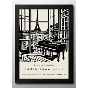 ポスター ジャズクラブ パリ エッフェル塔 フランス 音楽 絵画 インテリア A3サイズ アート 新築祝い ギフト 模様替え 北欧 15454