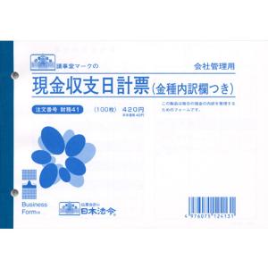 日本法令 現金収支日計票金種内訳つきB6 100枚 財務41