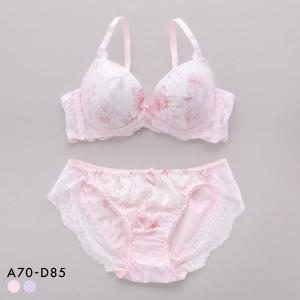 ブラジャー サンエイ 脇高 パステルフラワー ブラセット ABCD 脇肉 はみ肉すっきり 脇寄せ ショーツ セット 美胸 谷間 丸胸 SANEI