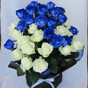 バラのアレンジ/ブルー&ホワイトローズアレンジ【青いバラ】【結婚祝い 花】【誕生日 花】ブルー20本、ホワイト15本