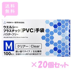 ウエルシー プラスチック(PVC)手袋 Mサイズ 100枚×20個(ケース販売) パウダーフリー グローブ クリアー 使い捨てタイプ 左右兼用 ウエルシー製薬