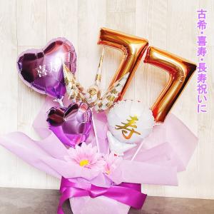 バルーンギフト 喜寿祝い 古希 喜寿 誕生日 バルーンアレンジ バルーン おしゃれ 豪華 電報 折り鶴 70歳 77歳 長寿 卓上 お祝い 敬老の日 数字 プレゼント