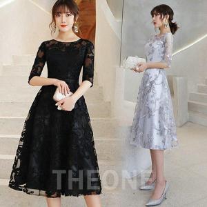 ドレス ミモレ丈&七分袖フォーマルシアーセレモニー結婚式 パーティードレス オケージョンドレスお呼ばれ 二次会 成人式 同窓会 謝恩会 20代 30代