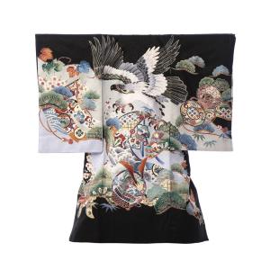正絹 男児初着 鷹 松竹梅 縁起物柄のお宮参り着物フルセット(黒系)|男の子 E-1N120