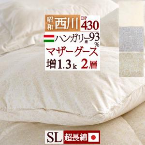 特別プレゼント 羽毛布団 シングル 昭和西川 ハンガリー産ホワイトマザーグースダウン93% グース 増量1.3kg DP430 綿100% 二層式キルト