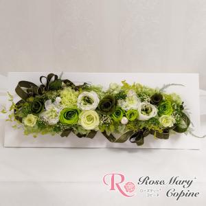プリザーブドフラワー 花 ギフト 横長アレンジ クリアケース入り お祝い 結婚祝い 新築祝い バースデープレゼント 還暦祝い グリーン