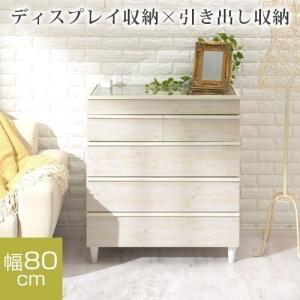 チェスト タンス たんす 洋服タンス 衣類収納 約 幅80cm 木製 収納 サイドチェスト ワイド 5段 ガラスコレクションケース おしゃれ