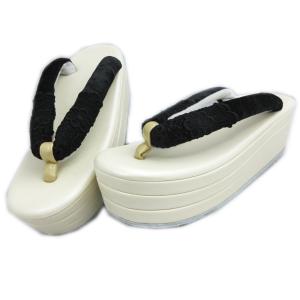 【訳有り 少難あり】 草履 ぞうり 厚底ヒール オフホワイト白色台 黒色地ベロア地花柄レース鼻緒 フリー こっぽり風 振袖 成人式 卒業式 袴 着物 3枚芯