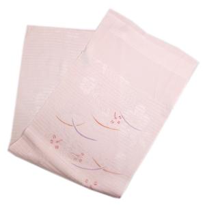 【訳有り 少難あり】 帯揚げ 帯上げ 絽 夏用 正絹 薄ピンク地撫子流水地模様地つゆしば木葉 夏物 単衣 着物 きもの 帯あげ