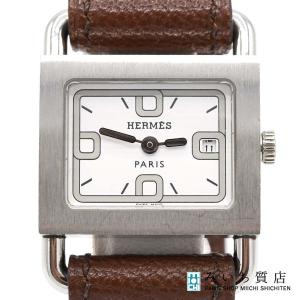 質屋 稼働 HERMES エルメス バレニア スクエア クォーツ 腕時計 BA1.210 2504237 ホワイト文字盤 ブラウンベルト 箱有 H17207 みいち質店