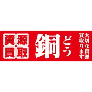 横断幕 横幕 資源買取 銅(どう) 大切な資源買取ります 背景:赤色