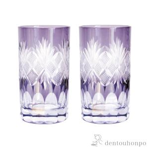 江戸切子 魚子切子 タンブラー ペア 江戸紫切子 ( 田島硝子 木箱名入れ有料 退職祝い 定年 ビールグラス ビアグラス 保温 保冷 人気 セット 江戸切子 結婚 )