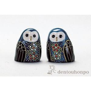 九谷焼 ペア梟 緑盛 1.5号 ( ふくろう 盛 木札名入れ有料 退職祝い 定年 フクロウ 置物 玄関 風水 小物 セット 九谷焼 結婚 出産 内祝い 引き出物 )