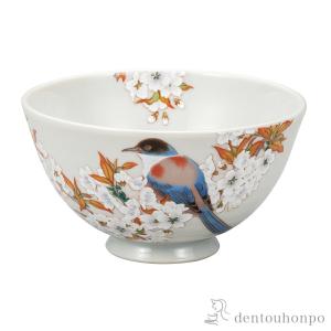 軽量飯碗 山桜に鳥 ( 退職祝い 定年 ごはん 白ご飯 お茶碗 飯碗 おすすめ 九谷焼 結婚 出産 内祝い 引き出物 金婚式 誕生日プレゼント 還暦祝い 古希 喜寿 )