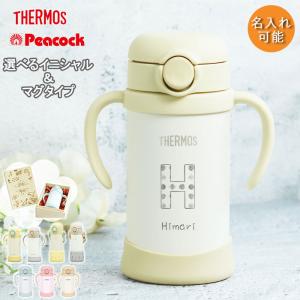名入れ 水筒 出産祝い サーモス ベビーストローマグ ピーコック 子供用 350ml イニシャル 魔法びん 真空断熱 THERMOS 保冷専用 FJT-350