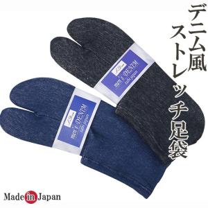 足袋 デニム風 カラーストレッチ足袋 25.0〜27.0cm フリーサイズ 黒/紺