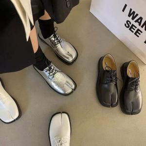 Maison Margiela 22 メゾンマルジェラ ブロークンミラー 足袋 バレリーナ クラックレザー バレエシューズ 靴 シルバー 38/25cm レディース 古着 中古
