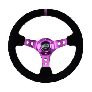 並行輸入 NRG Innovations NRG-RST-006S-PP 強化ハンドル 350mm スポーツハンドル(深さ3インチ) - ブラックスエード、パープルセンターマーク、パープルステッチ