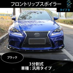 高品質 3分割式 汎用タイプ フロントリップスポイラー スプリッター ABS製 3点セット ブラック タイプB 出荷締切18時