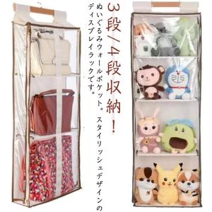 収納 コレクションケース ディスプレイ 収納 3段/4段 収納ケース 見せる収納 ぬいぐるみウォールポケット 小物 ぬいぐるみ 大容量 壁掛け 人形