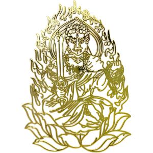 金運招来 悪霊退散 ゴールド 不動明王 6.4x4.7cm 金色 金属 デカール シール 5枚E829(ゴールド)