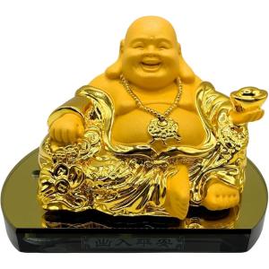 布袋様 仏像 七福神 金運 アップグッズ 風水グッズ インテリア (ゴールド, 台座あり)