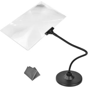 拡大鏡 スタンドルーペ 4倍 卓上 読書 手芸 作業 高齢者 プラモ 360°角度調整可能 (ブラック, 252mmx145mm)