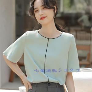 ブラウス レディース トップス シャツ プルオーバー 夏 夏服 シフォンブラウス 五分袖 半袖 ゆったり クルーネック 重ね着 レイヤード 韓国ファッション お洒落