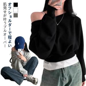 秋 トップス スウェット Tシャツ オフショルダー 韓国ファッション オフショルダー 春 長袖 レディース スウェットトップス オフショル ゆったり