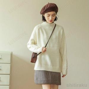 レディース 韓国ファッション トップス ニット セーター ハイネック 長袖 無地 定番 スリム カジュアル オフコーデ コンサバ ラフスタイル フェミニン オ