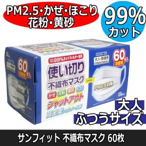 ヨコイ 使い切り サンフィット 不織布マスク お徳用60枚 大人・ふつうサイズ 175mm×90mm 3層構造 FM60 黄砂 風邪 PM2.5 ウイルス感染予防 細菌飛沫 衛生