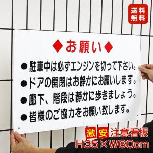 駐車場 お願い 激安看板 / H35×W60cm エンジン停止 アパート マンション お静かに マナー看板 注意 サインプレート TO-14A