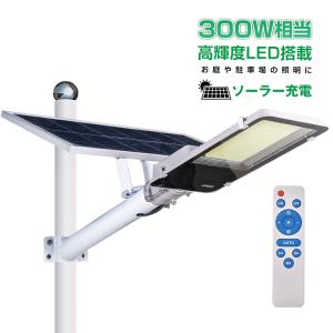 外灯 LED ソーラー ライト 街灯 ガーデンライト 駐車場 防犯 投光器 配線不要 300W相当 夜間 自動点灯 リモコン付き 防水仕様 屋外照明 sl075