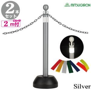 駐車場 ポール チェーンスタンド シルバー2本セット プラスチックチェーン2m付 反射シート付