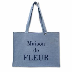 メゾンドフルール Maison de FLEUR 2025SS デニムブランドロゴ刺繍トートバッグ 肩掛け可 B4 ライトインディゴ レディース