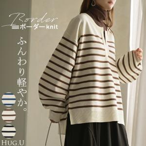 ニット ボーダー スポンジニット レディース ボーダーニット トップス セーター 軽量 プルオーバー ロング スポンジ 長袖 ボリュームスリーブ